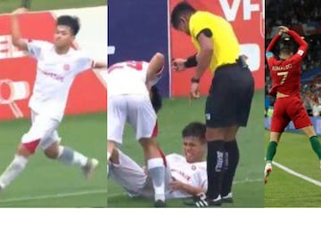 Cosas que suceden en Vietnam 🇻🇳. Uno quiso imitar el festejó de Cristiano Ronaldo y se rompió los ligamentos cruzados.pic.twitter.com/vqLrtv6Ccl