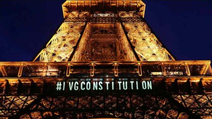 നിയമം പാര്ലമെന്റ് അംഗീകരിച്ചതോടെ പാരീസിലെ ഈഫല് ടവറില് 'എന്റെ ശരീരം, എന്റെ അവകാശം' എന്ന വാക്കുകള് തെളിഞ്ഞു