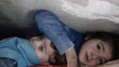 അവശിഷ്ടങ്ങൾക്കിടയിൽ അനിയനെ പൊതിഞ്ഞ കുഞ്ഞിക്കൈ; സിറിയയിൽ നിന്നുള്ള കാഴ്ച്ച
