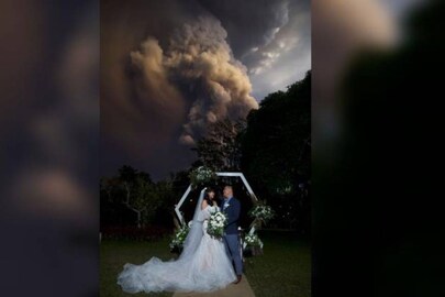 മനില: വിവാഹം നടത്താൻ നിശ്ചയിച്ച വേദിക്ക് സമീപം അഗ്നിപർവത സ്ഫോടനം ഉണ്ടാകാൻ പോകുകയാണെന്ന റിപ്പോർട്ട് കേട്ടപ്പോൾ ആദ്യം ഇവർ ഒന്നു പകച്ചു. എന്നാൽ, പിന്നീട് രണ്ടും കൽപിച്ച് ഇവർ മുന്നോട്ടു പോയി. ഞായറാഴ്ച നിശ്ചയിച്ച വേദിയിൽ വൈദികൻ ഇവരുടെ വിവാഹത്തെ ആശിർവദിച്ചപ്പോൾ പിന്നിൽ അഗ്നിപർവതം പൊട്ടിത്തെറിച്ച് ഇവർക്കുമേൽ ചാരം വിതറി.