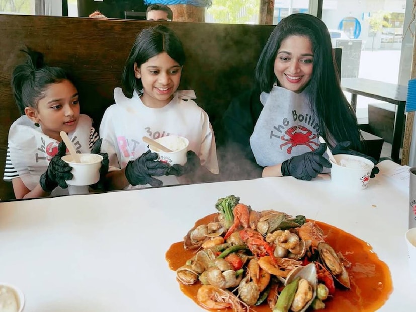 പുട്ടിൽ പല വെറൈറ്റി എന്ന തീം കേരളത്തിൽ അവതരിപ്പിച്ച ദിലീപിന്റെ 'ദേ പുട്ട്' ഇന്ന് നാട്ടിലും വിദേശത്തും ഹിറ്റാണ്. പണ്ട് കാവ്യാ മാധവനെയും കൊണ്ട് 'ദേ പുട്ടിൽ' നിന്നും ഭക്ഷണം കഴിക്കുന്ന ദിലീപിന്റെ ദൃശ്യങ്ങൾ സോഷ്യൽ മീഡിയയിൽ പ്രചരിച്ചിരുന്നു. ഇപ്പോൾ ഓസ്ട്രേലിയയിലെ മെൽബണിൽ തീർത്തും വ്യത്യസ്തമായ ഒരു വിഭവത്തിന്റെ മുന്നിലാണ് കാവ്യയും മകളും അനന്തരവളും. സംഗതി സീഫുഡ് ആണ്. എന്നാൽ, തീന്മേശയിൽ വിളമ്പുന്നു എന്ന പ്രയോഗം അക്ഷരാർത്ഥത്തിൽ പ്രയോഗത്തിൽ വരുത്തിയിട്ടുണ്ട് ഇവിടെ. പാത്രത്തിലേക്ക് വിളമ്പുന്നതിനു പകരം മേശയിൽ വിശാലമായി നിരത്തിയിട്ടുള്ള ഭക്ഷണത്തിന് മുന്നിലാണ് മൂവരും. കുട്ടികൾ രണ്ടുപേരുടെയും കയ്യിൽ ഐസ്ക്രീം കൂടിയുണ്ട്. എന്നിരുന്നാലും ഏറ്റവും കൂടുതൽ അമ്പരപ്പ് കാവ്യാ മാധവന്റെ മുഖത്താണ്